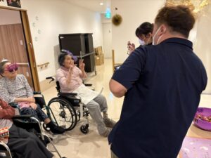 入居者の皆さんは、「ハロウィン?それって何をするの?」とあまり馴染みがないイベントではありましたが、仮装をしておやつバイキングを行い、皆さんとても楽しんでいらっしゃるようでした☺