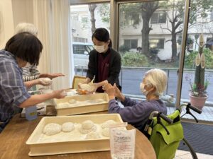 殆どの職員が門松づくりは初めてで、入居者様たちに「これでどうでしょう?」と聞きながら作成を行い、何とか無事に完成しました☆